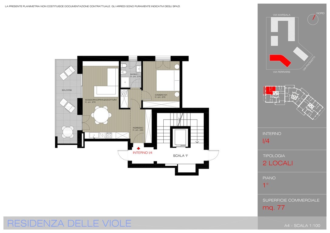 La Residenza Le Viole è l’ultima e più moderna realizzazione che completa il prestigioso Complesso Residenziale dei Fiori. Situata in una posizione strategica, tra Via Marsala e Via Pacinotti, la residenza gode di una vicinanza invidiabile al centro città, alla stazione ferroviaria e ai principali collegamenti stradali, offrendo il perfetto equilibrio tra comodità e tranquillità. L’edificio si sviluppa su otto piani fuori terra, con un ulteriore piano interrato dedicato alle autorimesse e ospita 49 unità abitative progettate per soddisfare ogni esigenza: dai bilocali fino agli attici quadrilocali con soppalco, pensati per chi cerca spazi ampi, luminosi e di pregio. Ogni appartamento, che viene consegnato completamente imbiancato, è stato studiato per garantire il massimo comfort abitativo e propone finiture di alta qualità: pavimenti in parquet prefinito in rovere o gres porcellanato, porte interne con maniglie in alluminio e portoncini blindati classe 4 ad alte prestazioni termiche e acustiche. La tecnologia è protagonista: il sistema centralizzato di riscaldamento e raffrescamento con gestione autonoma garantisce efficienza e risparmio, grazie anche al riscaldamento a pavimento e ai split idronici per la climatizzazione. Ogni unità è dotata di ventilazione meccanica controllata con recupero di calore, mentre l’impianto elettrico Living Light Bticino è predisposto per la domotica di livello 1 con videocitofono a colori e modulo gateway. È inoltre prevista la predisposizione per impianto d’allarme volumetrico e perimetrale. Gli spazi esterni non sono da meno: balconi e logge con parapetti in vetro, pavimentazioni di tipo galleggiante ad effetto pietra e presa d’acqua dedicata; giardini privati con irrigazione automatica, prato seminato e siepi divisorie, perfetti per vivere all’aria aperta in un contesto riservato. Le autorimesse, infine, sono dotate di illuminazione a LED temporizzata, presa dedicata per la ricarica di auto elettriche e basculanti in lamiera zincata. Il tutto in un edificio di classe energetica A4, con pannelli fotovoltaici e solare termico per la produzione di energia e acqua calda, serramenti in alluminio a taglio termico e frangisole motorizzati, a garanzia di un comfort sostenibile e di lunga durata.