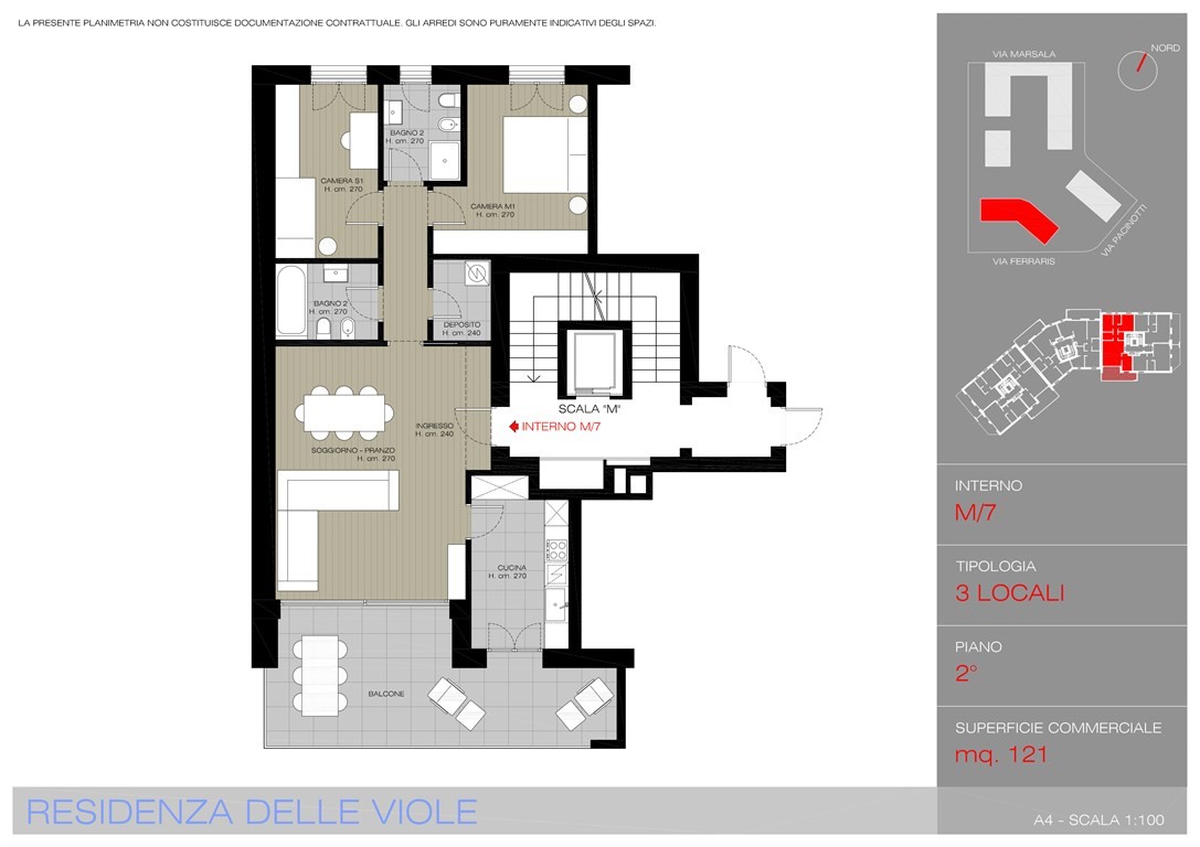 La Residenza Le Viole è l’ultima e più moderna realizzazione che completa il prestigioso Complesso Residenziale dei Fiori. Situata in una posizione strategica, tra Via Marsala e Via Pacinotti, la residenza gode di una vicinanza invidiabile al centro città, alla stazione ferroviaria e ai principali collegamenti stradali, offrendo il perfetto equilibrio tra comodità e tranquillità. L’edificio si sviluppa su otto piani fuori terra, con un ulteriore piano interrato dedicato alle autorimesse e ospita 49 unità abitative progettate per soddisfare ogni esigenza: dai bilocali fino agli attici quadrilocali con soppalco, pensati per chi cerca spazi ampi, luminosi e di pregio. Ogni appartamento, che viene consegnato completamente imbiancato, è stato studiato per garantire il massimo comfort abitativo e propone finiture di alta qualità: pavimenti in parquet prefinito in rovere o gres porcellanato, porte interne con maniglie in alluminio e portoncini blindati classe 4 ad alte prestazioni termiche e acustiche. La tecnologia è protagonista: il sistema centralizzato di riscaldamento e raffrescamento con gestione autonoma garantisce efficienza e risparmio, grazie anche al riscaldamento a pavimento e ai split idronici per la climatizzazione. Ogni unità è dotata di ventilazione meccanica controllata con recupero di calore, mentre l’impianto elettrico Living Light Bticino è predisposto per la domotica di livello 1 con videocitofono a colori e modulo gateway. È inoltre prevista la predisposizione per impianto d’allarme volumetrico e perimetrale. Gli spazi esterni non sono da meno: balconi e logge con parapetti in vetro, pavimentazioni di tipo galleggiante ad effetto pietra e presa d’acqua dedicata; giardini privati con irrigazione automatica, prato seminato e siepi divisorie, perfetti per vivere all’aria aperta in un contesto riservato. Le autorimesse, infine, sono dotate di illuminazione a LED temporizzata, presa dedicata per la ricarica di auto elettriche e basculanti in lamiera zincata. Il tutto in un edificio di classe energetica A4, con pannelli fotovoltaici e solare termico per la produzione di energia e acqua calda, serramenti in alluminio a taglio termico e frangisole motorizzati, a garanzia di un comfort sostenibile e di lunga durata.