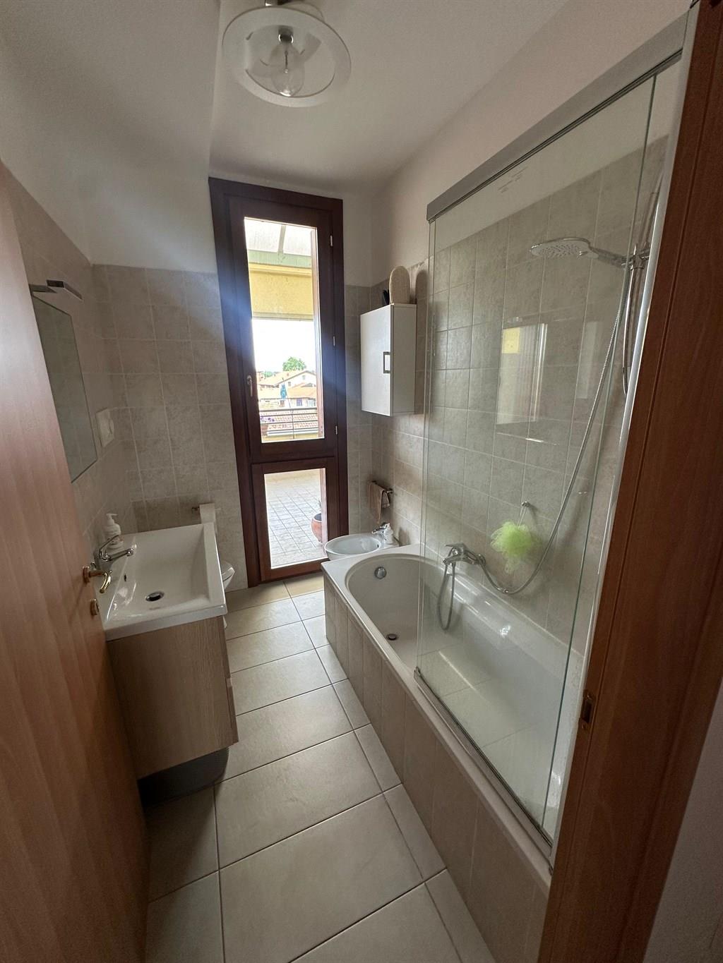 A Villasanta, vicino al centro commerciale Il Gigante, proponiamo in affitto appartamento bilocale di 80mq commerciali sito al piano secondo servito da ascensore. L'unità abitativa è composta da soggiorno con cucina abitabile, camera da letto, bagno e ampio terrazzo; completa la proprietà mansarda non abitabile collegata da scala interna. Riscaldamento centralizzato con contabilizzatore. Le spese condominiali comprendono il riscaldamento e l'acqua. Autorimessa singola inclusa. L'appartamento NON è arredato. Spese istruttoria a carico del conduttore € 80,00 + IVA.
