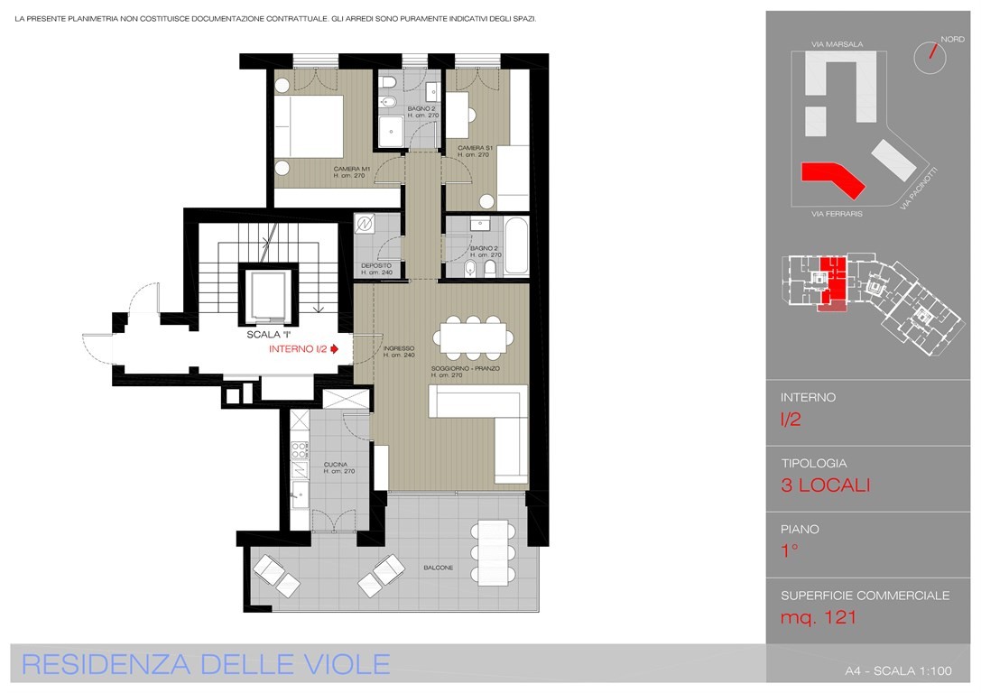 La Residenza Le Viole è l’ultima e più moderna realizzazione che completa il prestigioso Complesso Residenziale dei Fiori. Situata in una posizione strategica, tra Via Marsala e Via Pacinotti, la residenza gode di una vicinanza invidiabile al centro città, alla stazione ferroviaria e ai principali collegamenti stradali, offrendo il perfetto equilibrio tra comodità e tranquillità. L’edificio si sviluppa su otto piani fuori terra, con un ulteriore piano interrato dedicato alle autorimesse e ospita 49 unità abitative progettate per soddisfare ogni esigenza: dai bilocali fino agli attici quadrilocali con soppalco, pensati per chi cerca spazi ampi, luminosi e di pregio. Ogni appartamento, che viene consegnato completamente imbiancato, è stato studiato per garantire il massimo comfort abitativo e propone finiture di alta qualità: pavimenti in parquet prefinito in rovere o gres porcellanato, porte interne con maniglie in alluminio e portoncini blindati classe 4 ad alte prestazioni termiche e acustiche. La tecnologia è protagonista: il sistema centralizzato di riscaldamento e raffrescamento con gestione autonoma garantisce efficienza e risparmio, grazie anche al riscaldamento a pavimento e ai split idronici per la climatizzazione. Ogni unità è dotata di ventilazione meccanica controllata con recupero di calore, mentre l’impianto elettrico Living Light Bticino è predisposto per la domotica di livello 1 con videocitofono a colori e modulo gateway. È inoltre prevista la predisposizione per impianto d’allarme volumetrico e perimetrale. Gli spazi esterni non sono da meno: balconi e logge con parapetti in vetro, pavimentazioni di tipo galleggiante ad effetto pietra e presa d’acqua dedicata; giardini privati con irrigazione automatica, prato seminato e siepi divisorie, perfetti per vivere all’aria aperta in un contesto riservato. Le autorimesse, infine, sono dotate di illuminazione a LED temporizzata, presa dedicata per la ricarica di auto elettriche e basculanti in lamiera zincata. Il tutto in un edificio di classe energetica A4, con pannelli fotovoltaici e solare termico per la produzione di energia e acqua calda, serramenti in alluminio a taglio termico e frangisole motorizzati, a garanzia di un comfort sostenibile e di lunga durata.